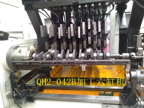 QH2-042變力曲軸圓角滾壓及滾壓校直機床(發(fā)明專利號1823602)是與武漢理工大學(xué)共同開發(fā)的一款高檔數(shù)控設(shè)備。該機床為九鉗直立布置,可以一次性對所有四缸曲軸完成的變力滾壓,自動檢測和自動滾壓校直的加工。該機床帶有測力器,自動檢測工件零位,自動檢測記錄工件加工情況和滾輪破碎自動檢測等功能,可以完全保證工件的加工質(zhì)量。具備與著名德國的圓角滾壓設(shè)備制造商Hegenscheidt公司產(chǎn)品同樣的功能,具有極高的性價比。